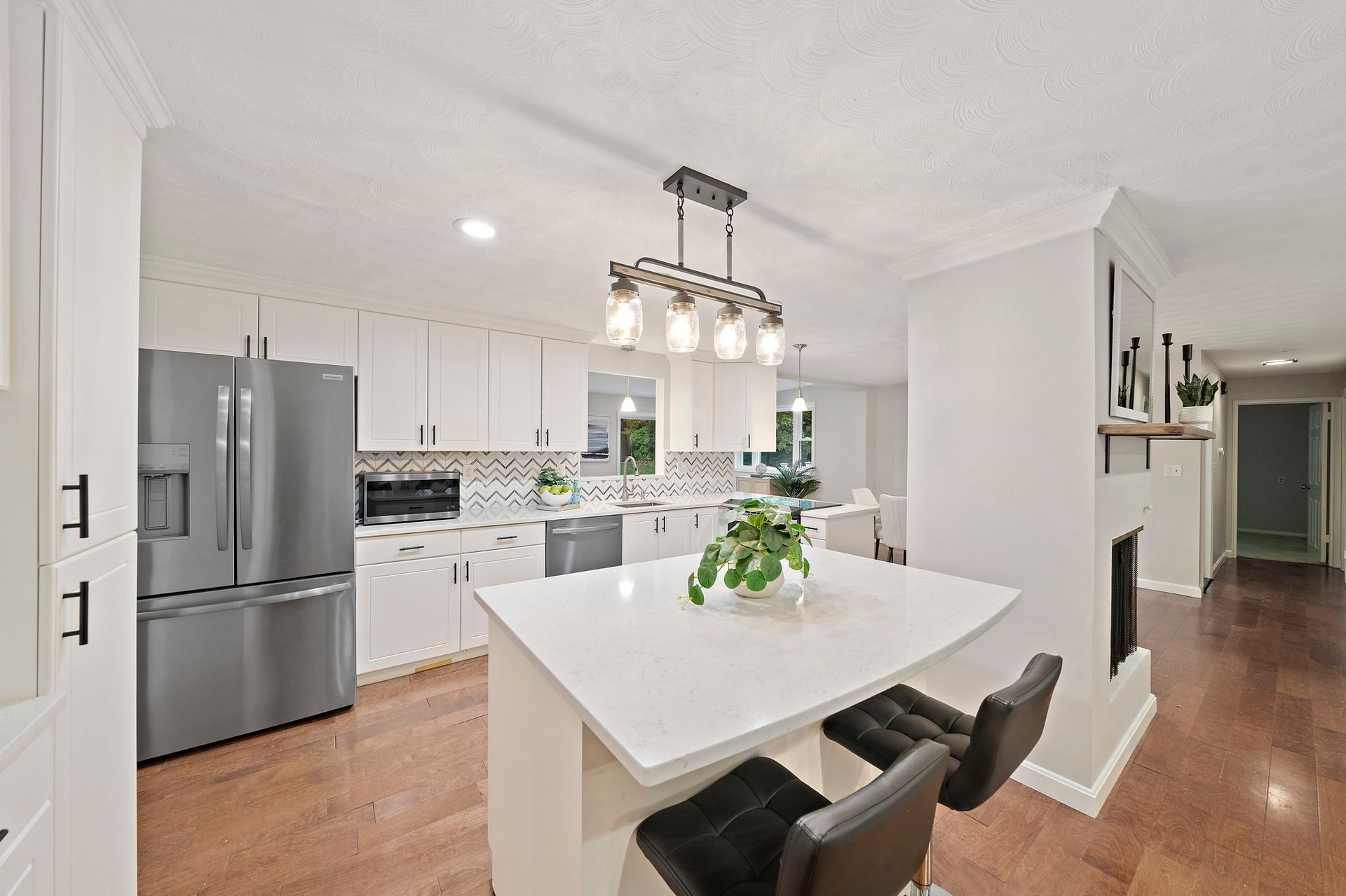 The kitchen is bright, modernized, and designed to be used—not just admired. Stylish finishes give it a fresh feel, while the layout keeps everything practical and accessible. It’s the kind of space where mornings start smoothly and dinners don’t feel like a chore.