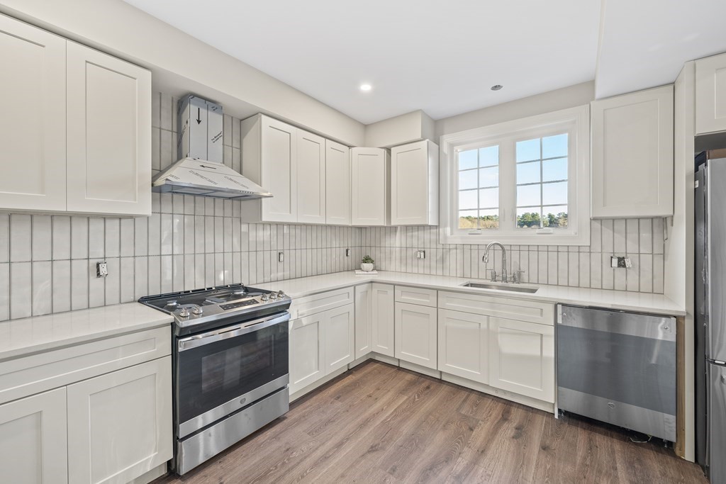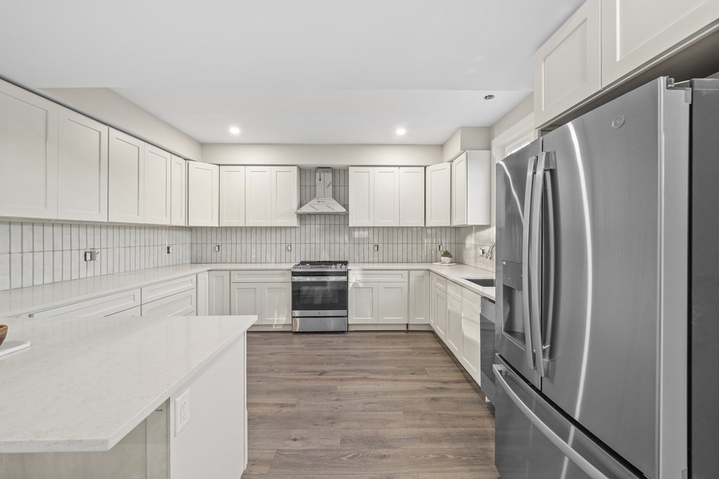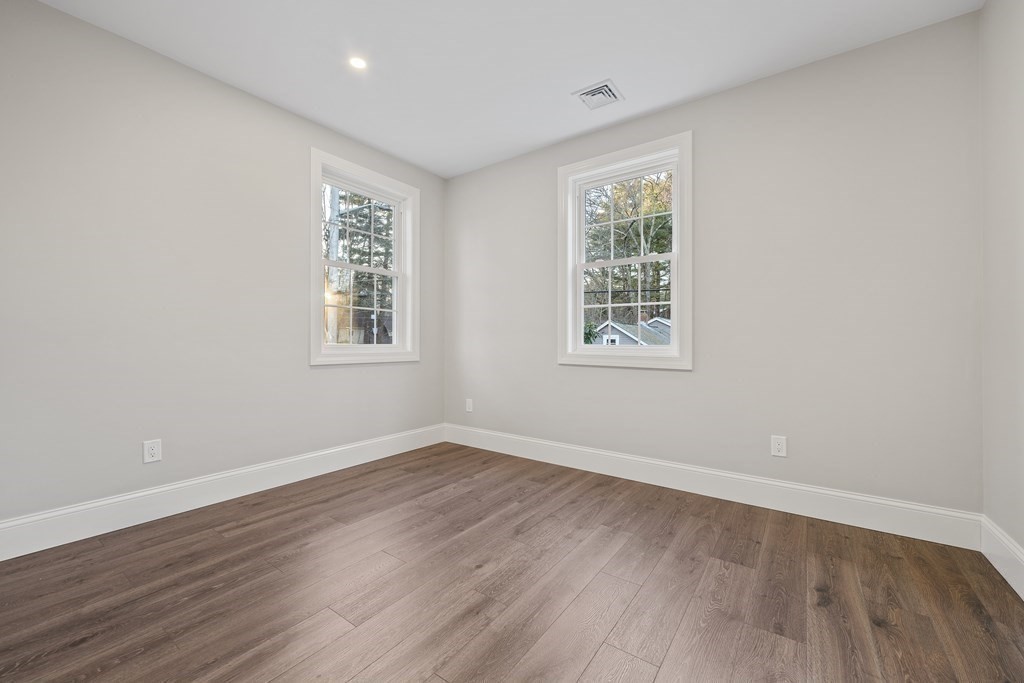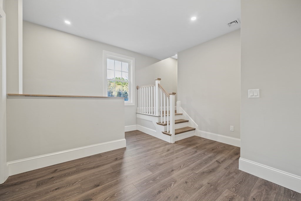 Rivaling new construction, this home was fully remodeled in 2023. Every detail has been thoughtfully considered for a worry-free lifestyle. The open-concept living and kitchen area is bathed in natural light, creating an inviting and spacious atmosphere for daily living and entertaining. The kitchen comes complete with stainless steel appliances, quartz counters, contemporary backsplash and peninsula island. Your oasis awaits when you step outside from the living space to a generously sized, flat, private yard nestled beside Pinewood Pond. Head upstairs to find the primary suite is a sanctuary of its own, complete with a balcony and waterviews. The second level also includes 2 guest rooms and a generously sized guest bathroom with tub. A finished walk-up attic offers an additional bedroom or den/office with large enclosed store area. Enjoy close proximity to Cobbs Corner shops and routes 95 and 24.